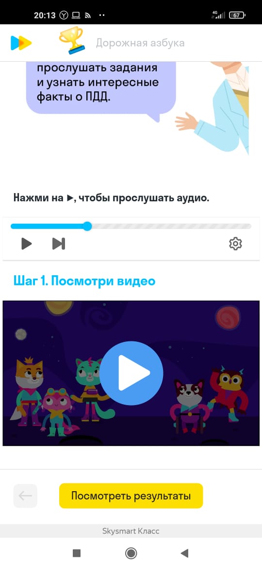 17 сентября в рамках дня здоровья, классный руководитель 3 класса Мухутдинова Р.Ф. для учащихся организовала онлайн мероприятие на SKYSMART платформе по теме «Дорожная азбука». Учащиеся помогали Максу и его друзьям правильно переходить дорогу, учили дорожные знаки и запоминали, как себя вести в транспорте. -