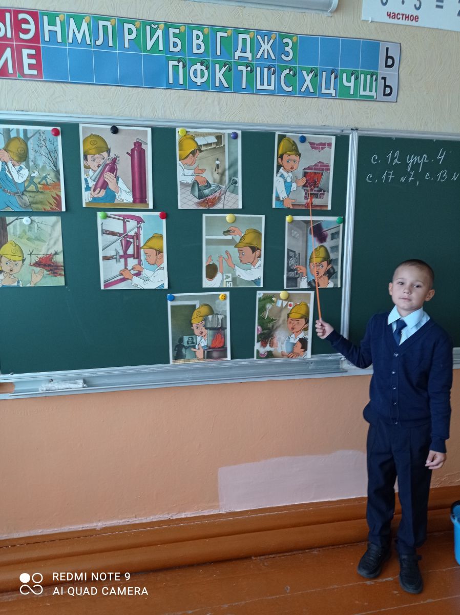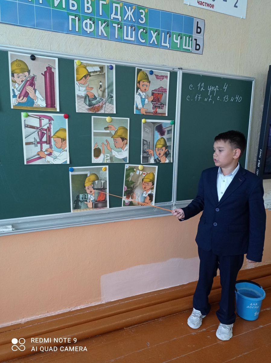 С целью ознакомления с основами, причинами пожаров, с первичными средствами пожаротушения; обучения соблюдению правил пожарной безопасности в 3 классе прошёл классный час «Пожарная безопасность». Учащиеся поделились знаниями с одноклассниками. -