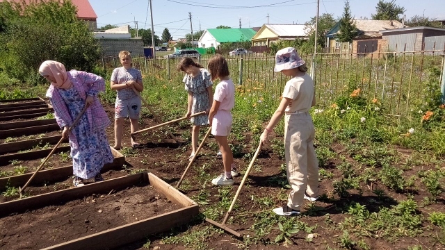 Работой учащихся руководит Зарипова А. Г., которая обучает ребят правильным и безопасным приемам работы, обеспечивает соблюдение школьниками правил техники безопасности. Работа на пришкольном участке требует очень большой отдачи, терпения и, несомненно, материальных затрат. Школа обеспечивает учащихся сельхозинвентарём (лопаты, ведра, мотыги). И не стремление к наградам, а любовь к своей школе движет учениками и педагогами нашего коллектива. -