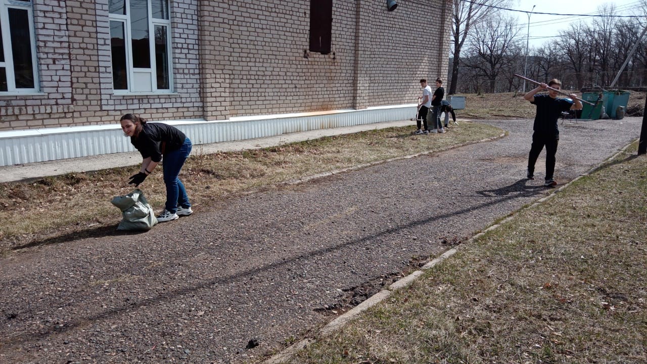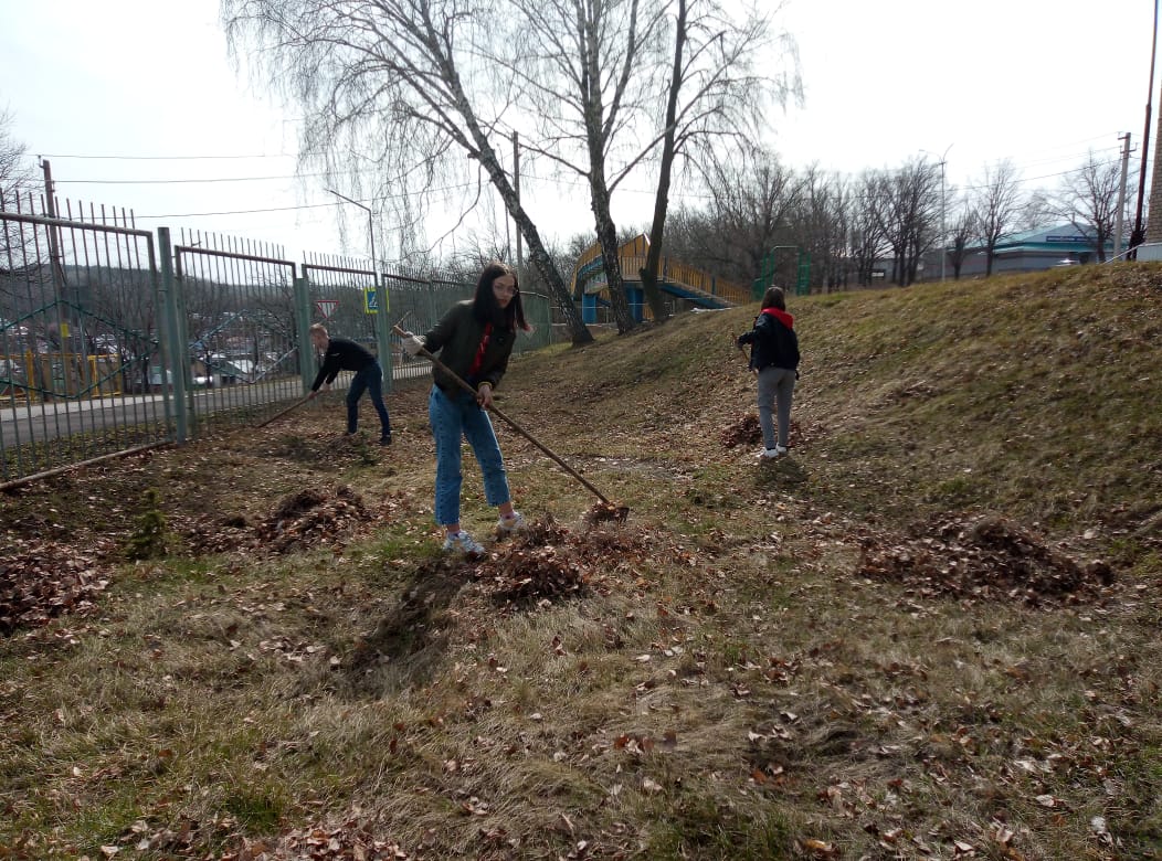 Большой дружной семьей перед майскими праздниками наша школа вышла на субботник. Вместе—значит дружно! И погода радовала всех нахлынувшим теплом, поэтому работа спорилась, и результат был, как говорится, налицо. Молодцы! -