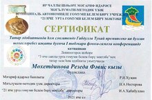 Татар теле һәм әдәбияты укытучысы Мөхетдинова Р.Ф. татар әдәбиятында һәм сәнгатендә Габдулла Тукай премиясенә ия булган шәхесләребез иҗаты буенча I төбәкара фәнни-гамәли конференциядә катнашты.Учитель родного (татарского) языка и литературы Мухутдинова Р.Ф. принимала участие в межрегиональной научно - практической конференции по творчеству лауреатов премии Габдуллы Тукая в татарской литературе и искусстве. -