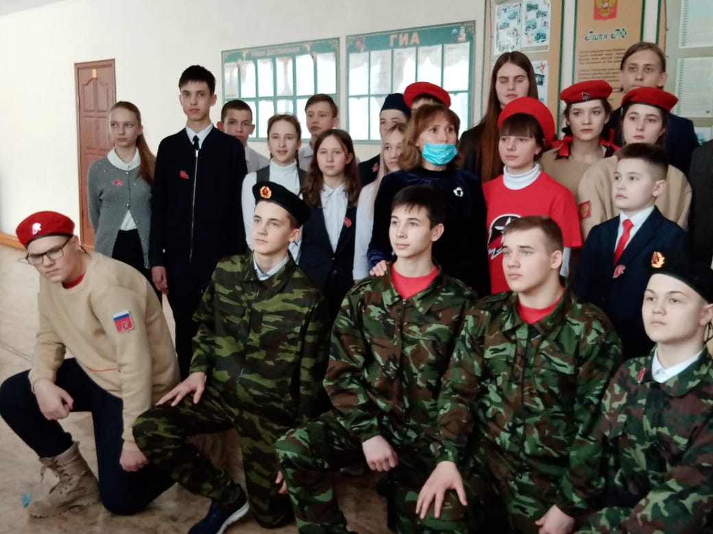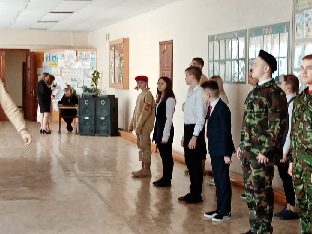 19.02 было торжественное мероприятие посвящение в Юнармию. Самых достойных учащиеся приняли в ряды Юнармии. Учащимся вручили значки и удостоверения юнармейцев. -