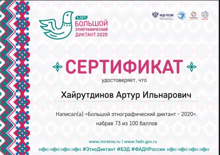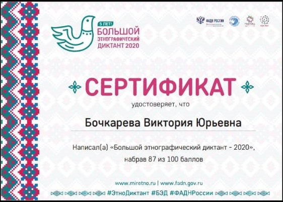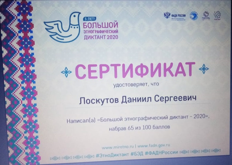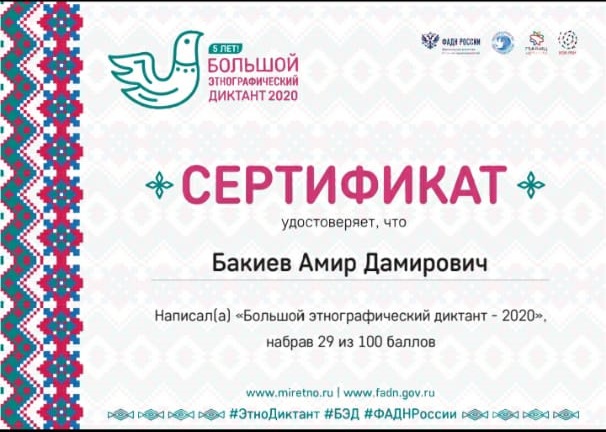 В этом году акция «Большого этнографического диктанта 2020» проходит с 3 по 8 ноября 2020 года. Наши учащиеся приняли активное участие!!!