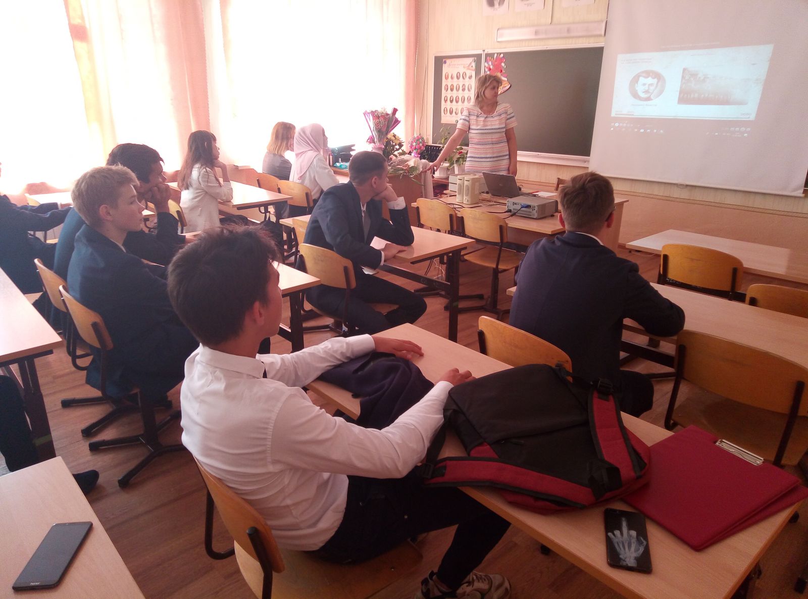 Традиционный Урок Мира в этом учебном году был посвящен юбилейным датам: 75-летию со дня Победы в Великой Отечественной войне, 100 –летию со дня образования ТАССР и 65 –летию г.Лениногорска.Учащиеся 9 класса посмотрели видеофильм «История ТАССР», который рассказывает об истории становления нашей республики с первых дней до сегодняшнего времени. Республика Татарстан – это один из лидирующих регионов в нашей стране, это территория больших возможностей для каждого гражданина. -