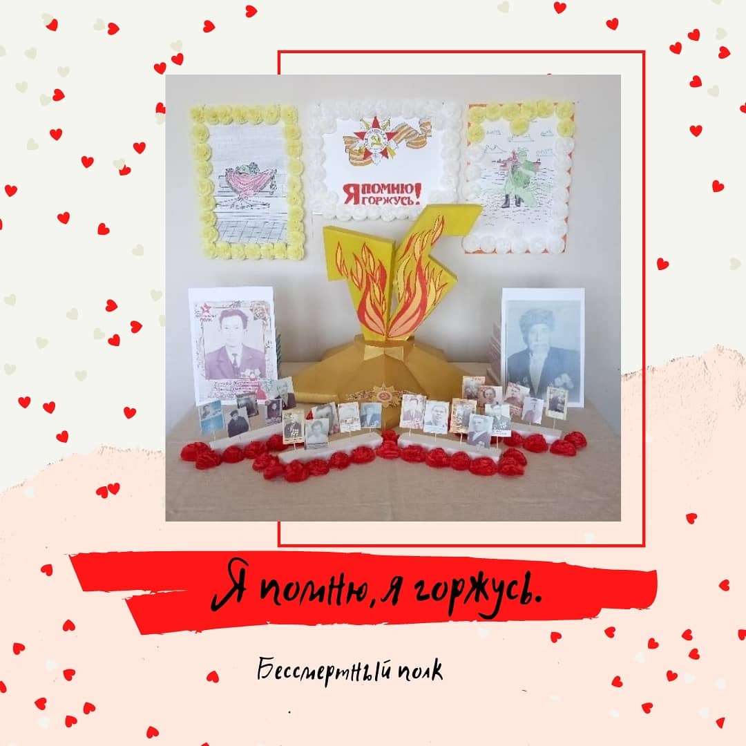 «Бессмертный полк» — международное общественное гражданско-патриотическое движение по сохранению личной памяти о поколении Великой Отечественной войны, а также название акций-шествий, организуемых данным движением. Участники ежегодно в День Победы проходят колонной по улицам городов с фотографиями своих родственников — ветеранов армии и флота, партизан, подпольщиков, бойцов Сопротивления, тружеников тыла, узников концлагерей, блокадников, детей войны, — и записывают семейные истории о них в Народную летопись на сайте движения. В этом году в связи с коронавирусом, данное мероприятие проходит в онлайн режиме.