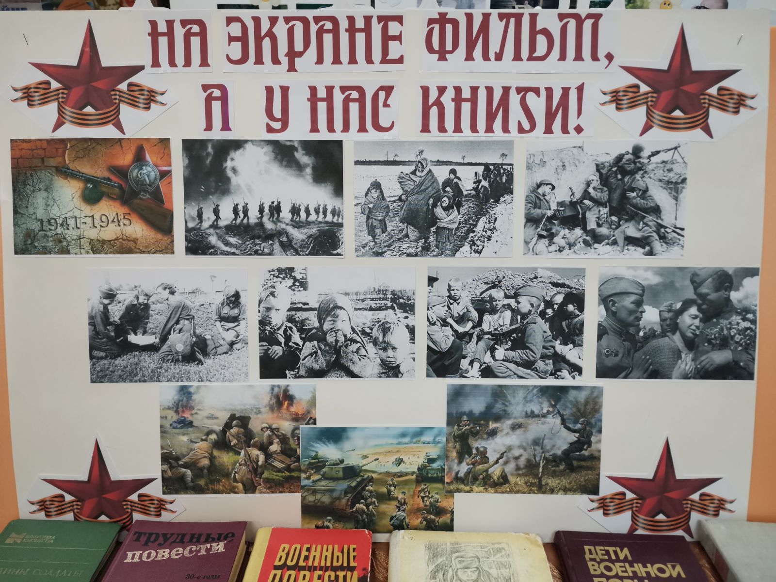В школьной библиотеке оформлена выставка «На экране – фильм, а у нас – книги», приуроченная к международному месячнику школьных библиотек. На выставке представлены книги, которые экранизированы российским кинематографом, картинки-кадры из фильмов, информация о некоторых фильмах в виде кадров, афиши, обращение, выполненное на ватмане. -
