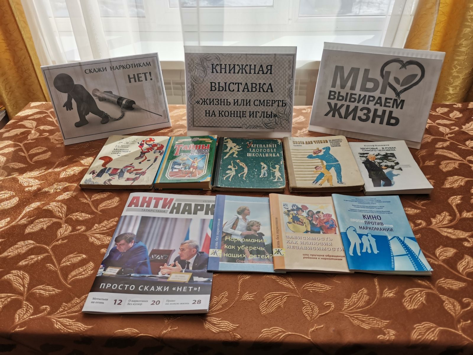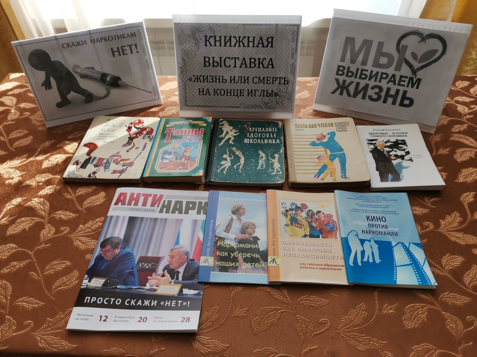 Школьный библиотекарь Андреева Л.М. оформила в школьной библиотеке книжную выставку "Жизнь и смерть на конце иглы". На данной выставке представлены книги "Наркомания: как уберечь наших детей?", "Зависимость, как иллюзия независимости", "Кино против наркомании", информационные журналы Республики Татарстан "АнтиНарк", также на данной выставке много литературы о здоровом образе жизни и о спорте. Добро пожаловать!