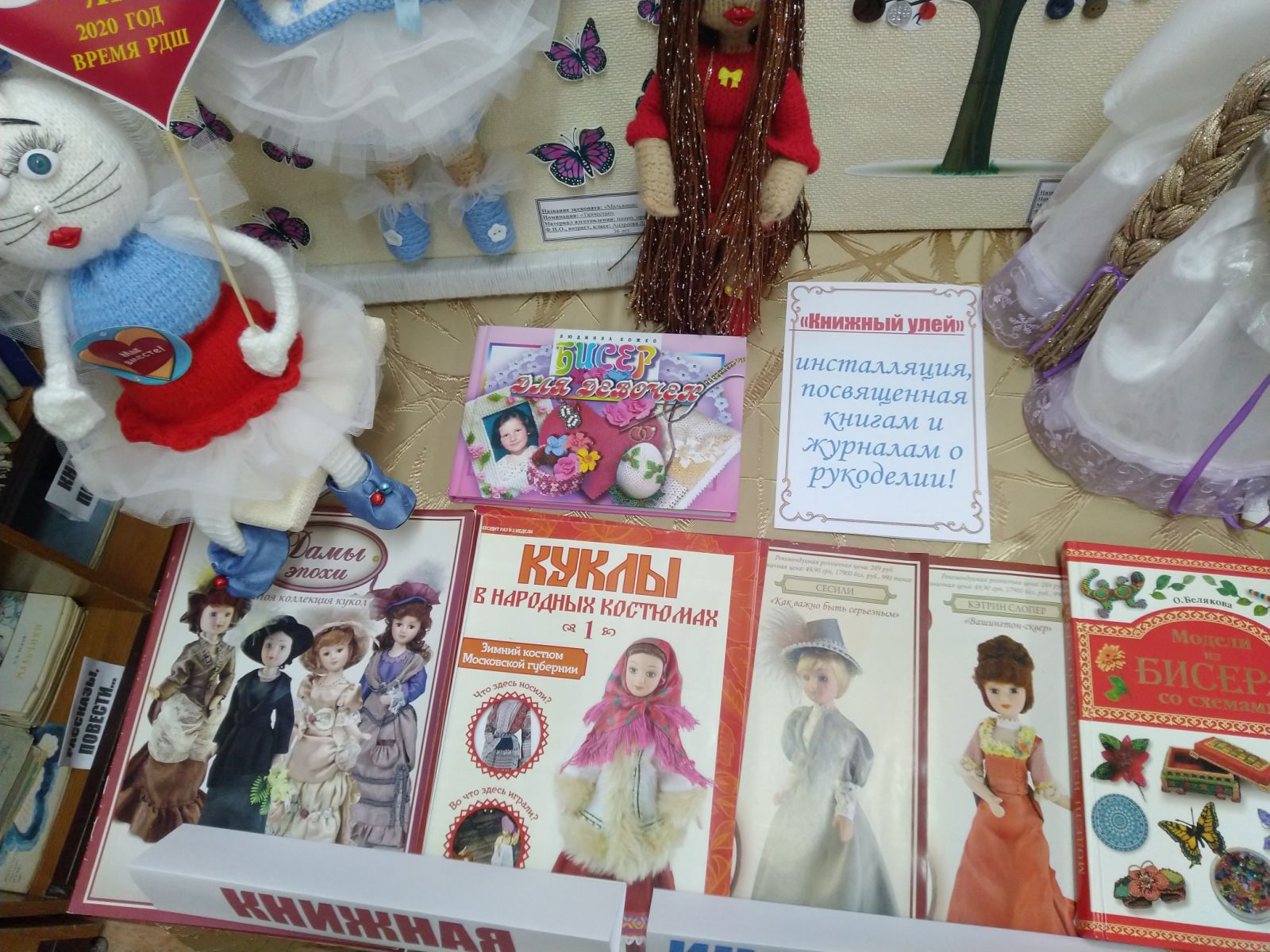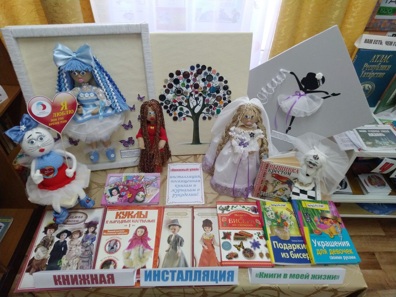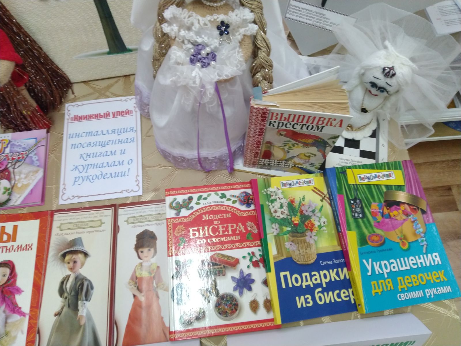 В инсталляцию входят книги, журналы по рукоделию, а также творческие работы школьного библиотекаря Андреевой Л. М.Эта выставка вдохновляет детей на творчество. Дети с большим интересом ее просматривают. Читая эти журналы, книги о рукоделии дети самостоятельно занимаются творчеством дома. По итогам конкурса школьный библиотекарь Андреева Л. М. стала ПРИЗЕРОМ муниципального конкурса "Книжная инсталляция". Поздравляем!