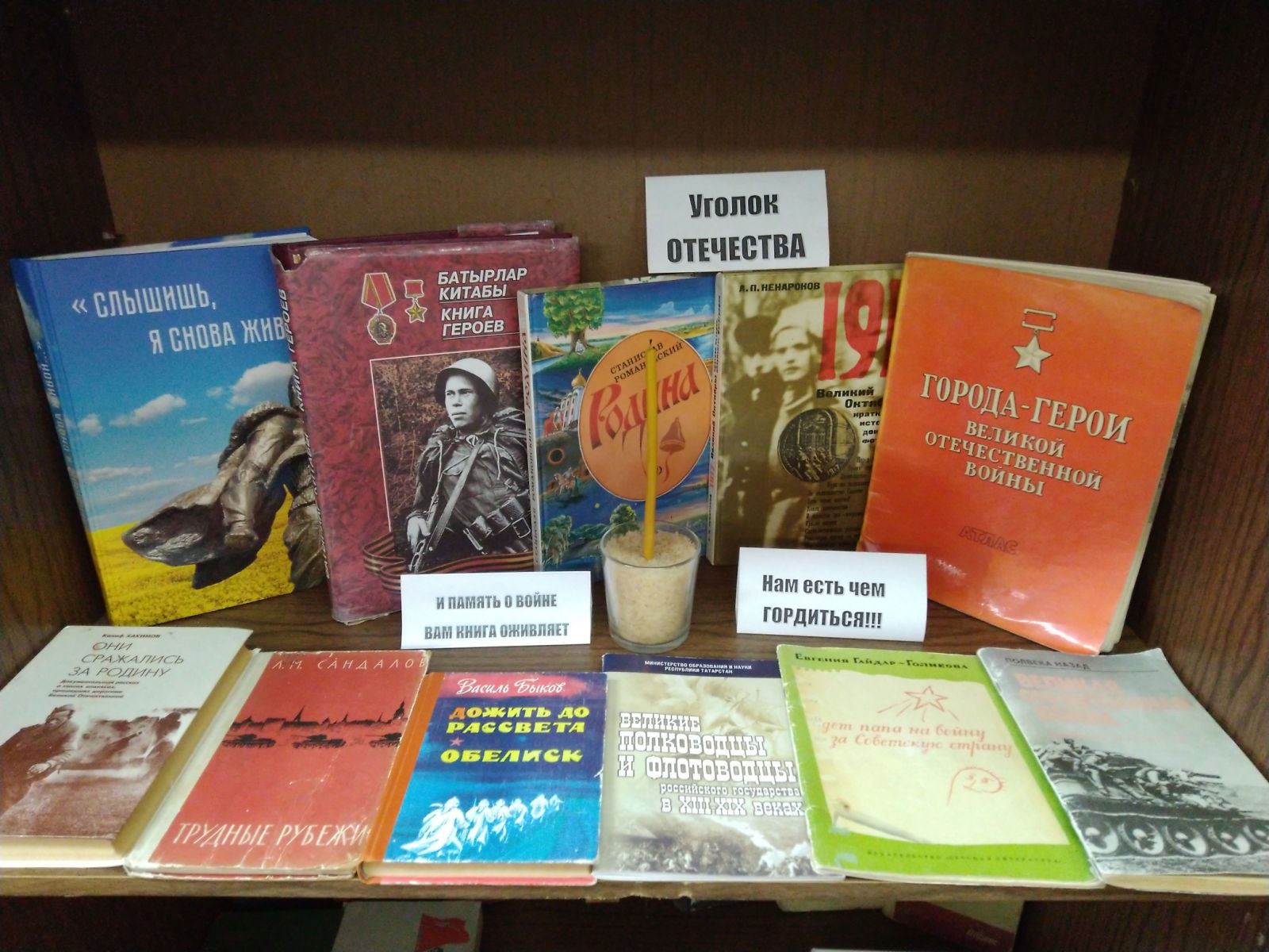 В школьной библиотеке оформлена книжная выставка под названием «Герои Отечества». Представленные на выставке книги напомнят читателям славные вехи отечественной истории, имена и портреты героев фронта и тыла, проявивших доблесть в бою и в труде, отвагу и смелость в защите Отечества. Расскажут они и о малоизвестных фактах и событиях, участниками которых являлись рядовые солдаты и генералы, блокадники и труженики тыла, летчики, бойцы «невидимого фронта». В отдельном разделе представлены книги о героях нашего края.