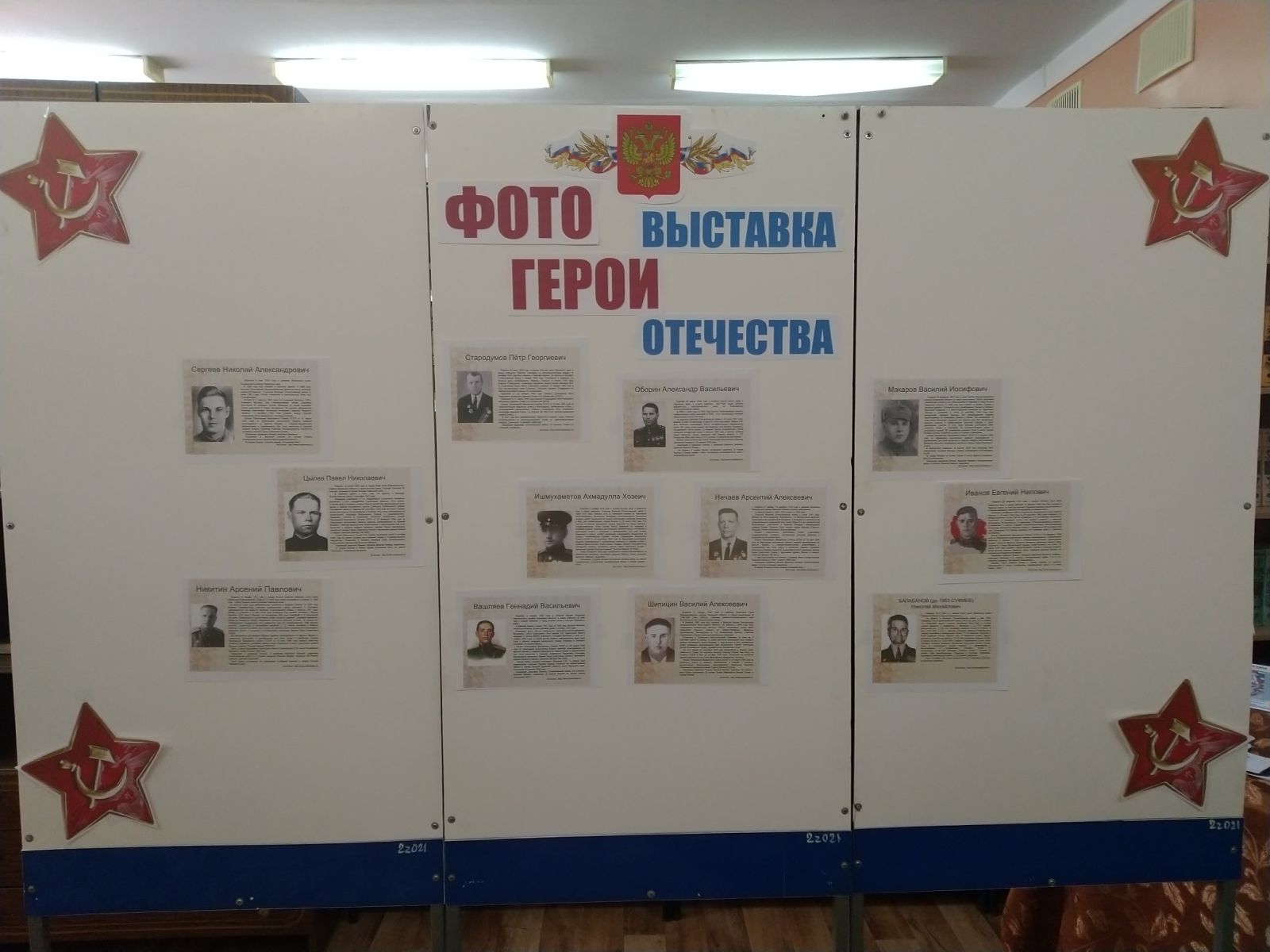 В школьной библиотеке представлена фотовыставка-событие «Герои Отечества», на которой вы найдете информацию об истории праздника, о великих полководцах, народных героях, героях-земляках.