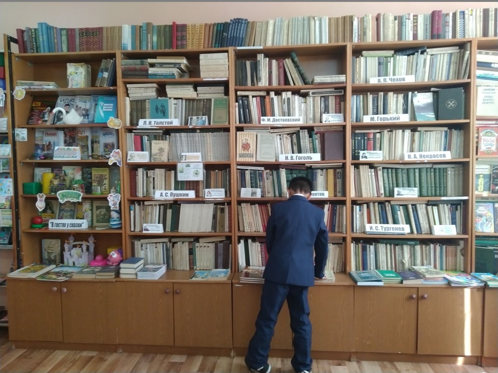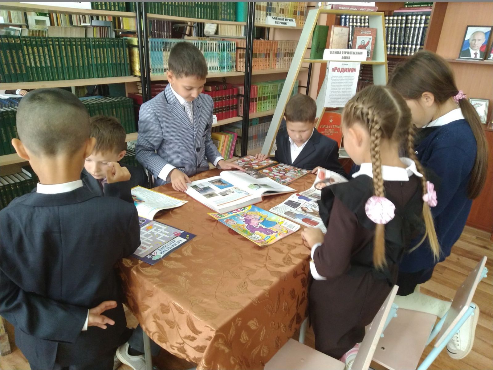 Библиотекарь Андреева Л. М. совместно с учителями школы провела беседу-экскурсию по школьной библиотеке. Ребята побывали в удивительном городе, где вместо улиц — ряды книжных стеллажей, вместо этажей — книжные полки, дома — это тома книг. А у каждого дома своё название. Дети познакомились с жильцами города — литературными героями. Библиотекарь рассказала, какие книги есть на абонементе, про поступление новых детских книг и журналов, что все они находятся по отделам: животные, космос, техника, история и др. Дети познакомились с правилами пользования библиотекой. Так же познакомились с зверятами с живого уголка. Получили много впечатлений. По окончании экскурсии каждый ребенок, выбрал для себя книжки на домашнее пользование.