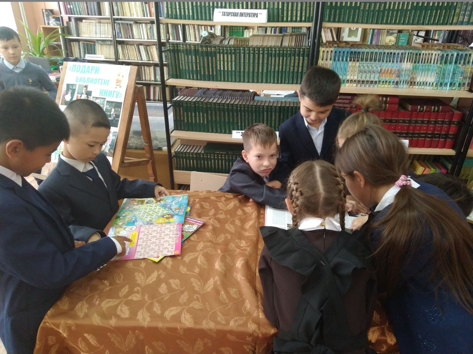 «Все о Татарстане» - так называется викторина, посвященная к 100-летию образования Татарской АССР. Викторина была проведена для детей с целью углубления и повышения знаний об истории Татарстана и его народа. В сценарий этого мероприятия были включены игры, конкурсы, вопросы, логические задания про Татарстан. Работала книжная выставка «Туган ягым Татарстан», в которой представлены книги о Татарстане, около которой проводятся обзоры и беседы со школьниками. Работа ведется постоянно.