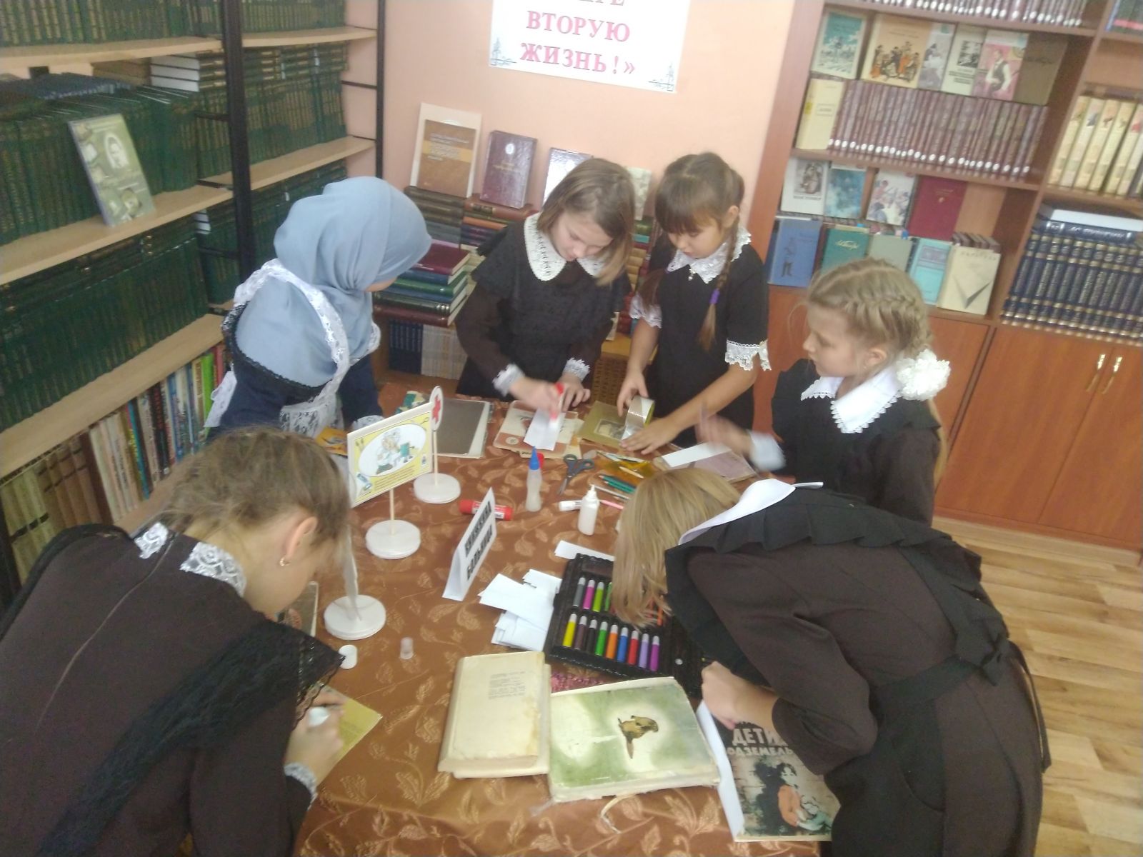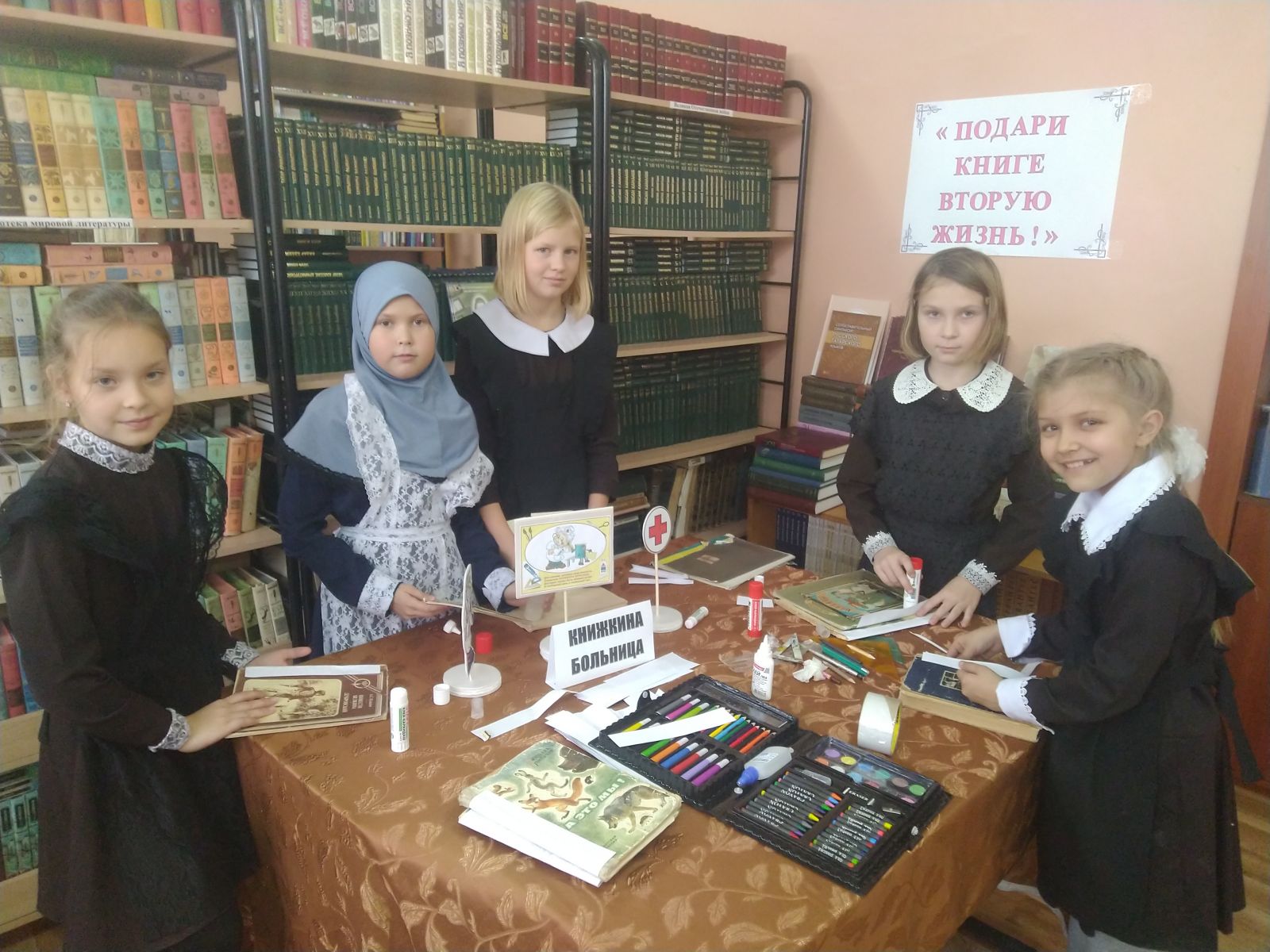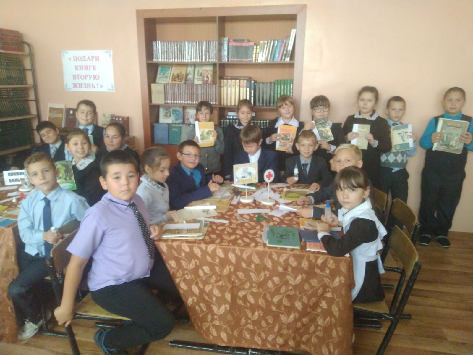 В жизни человека огромную роль играет книга. К сожалению, в последнее время школьные библиотеки плохо пополняются новой литературой, а старые книги ветшают. Один библиотекарь не в состоянии и выдавать книги читателям, и оформлять стенды, и ремонтировать книги. В связи с этим учащиеся 2 и 3 класса нашей школы приняли участие в акции « Подари книге вторую жизнь».