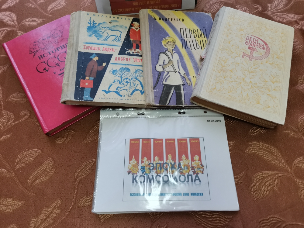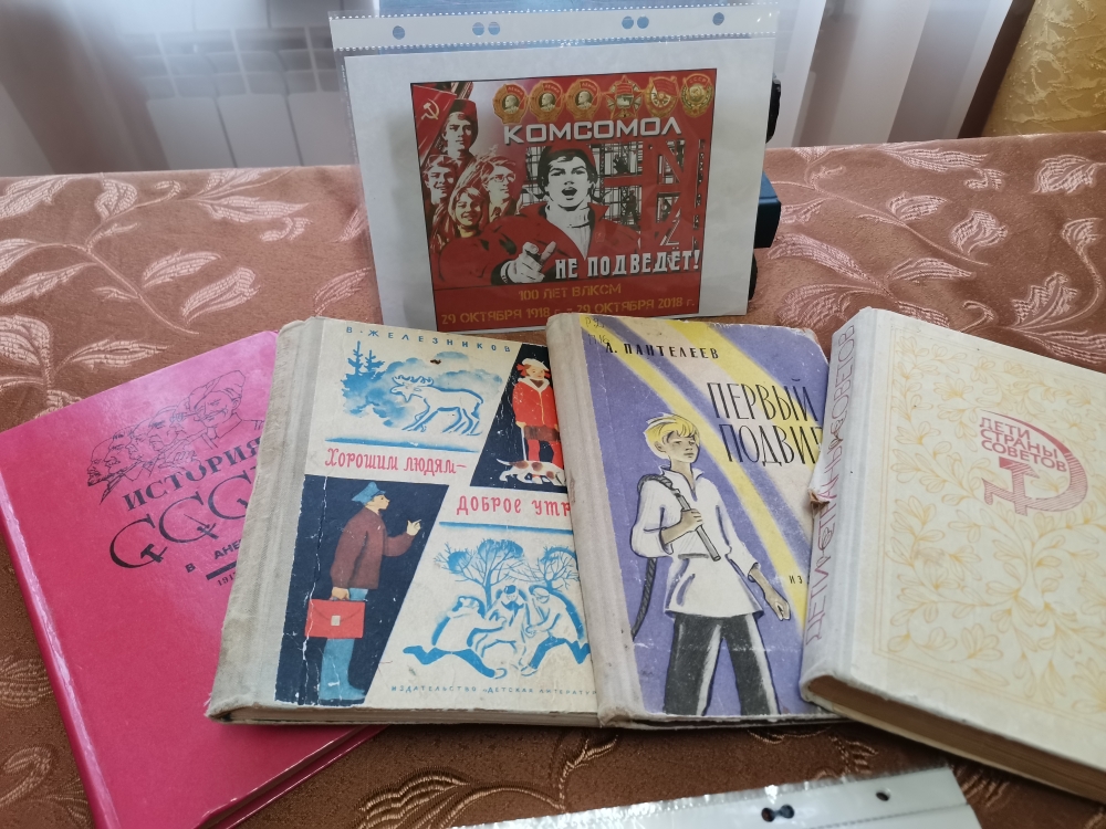 Комсомол. Эта огромная молодёжная организация сплотила в своих рядах лучших представителей молодого поколения своего времени. Мощнейшее молодежное движение активно участвовало в жизни страны в годы войны и в мирное время. Комсомол, а если говорить более точно — Коммунистический союз молодежи — появился в далеком 1918, объединив вокруг себя идеологически подкованную, но разобщенную молодежь. Праздник советской молодежи — День комсомола — официально отмечался в СССР 29 октября.В школьной библиотеке оформлена выставка.Выставка рассказывает о значении комсомола в формировании у молодёжи активной жизненной позиции, стремлении участвовать в больших и малых делах страны, ощущать себя частицей огромного государства, о трудовых подвигах молодёжи в годы первых пятилеток, а также о современных молодёжных организациях, которые считают себя его преемникамиНа выставке представлены фотографии, документы, плакаты, книги, личные вещи ветеранов комсомола, нумизматика, связанные с историей комсомола. -