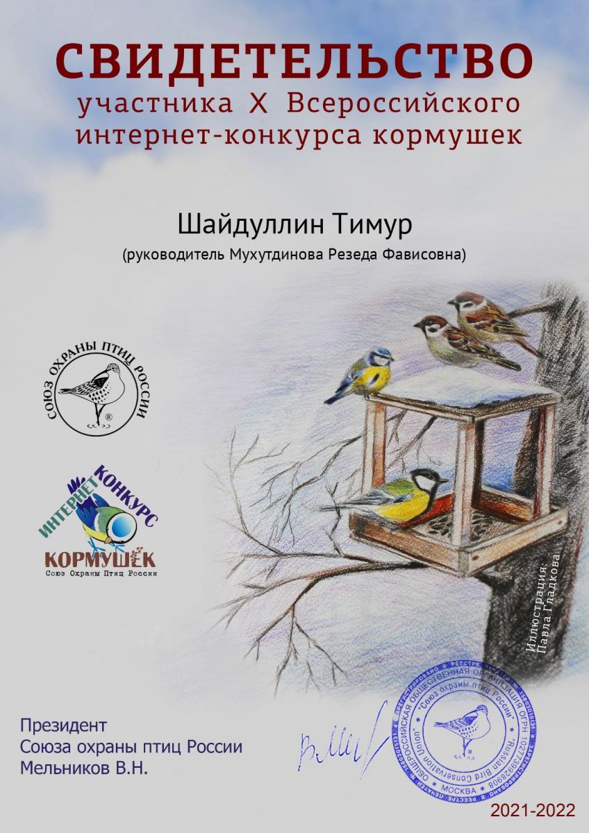 С 12 ноября 2021 года Союзом охраны птиц России в рамках акции «Покормите птиц!» проводился Десятый интернет-конкурс кормушек.