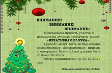 Воспитанниками школьного лесничества «Дубки» с 27 сентября по 9 октября в школе был проведён конкурс из лесных материалов «Осенняя фантазия». В конкурсе приняли участие 44 учащихся. Победители и участники были награждены грамотами и дипломами школьного лесничества. -