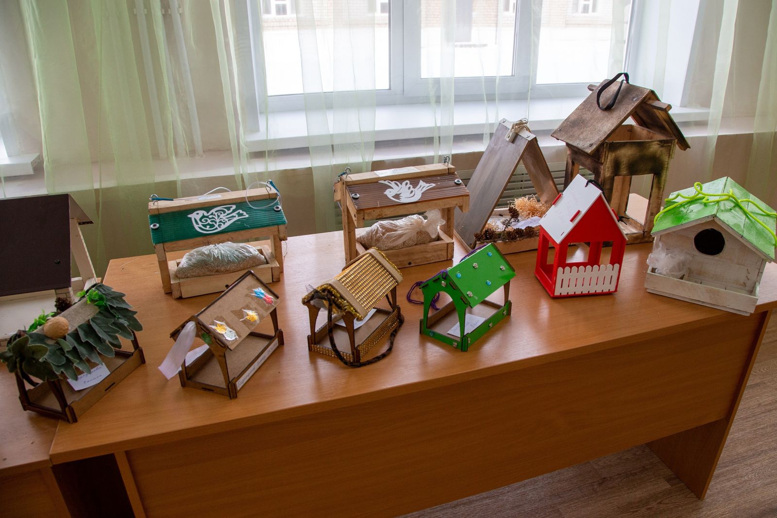 В конкурсе на изготовление кормушек ребята и их родители приняли активное участие. В результате совместного труда и творчества детей и взрослых были изготовлены самые разнообразные кормушки. Фантазии не было границ: деревянные дворцы, пластиковые бутылки и разнообразный природный материал. Дети с радостью показывали друг другу свои кормушки, рассматривали и сравнивали их.