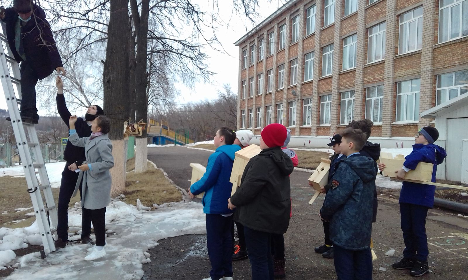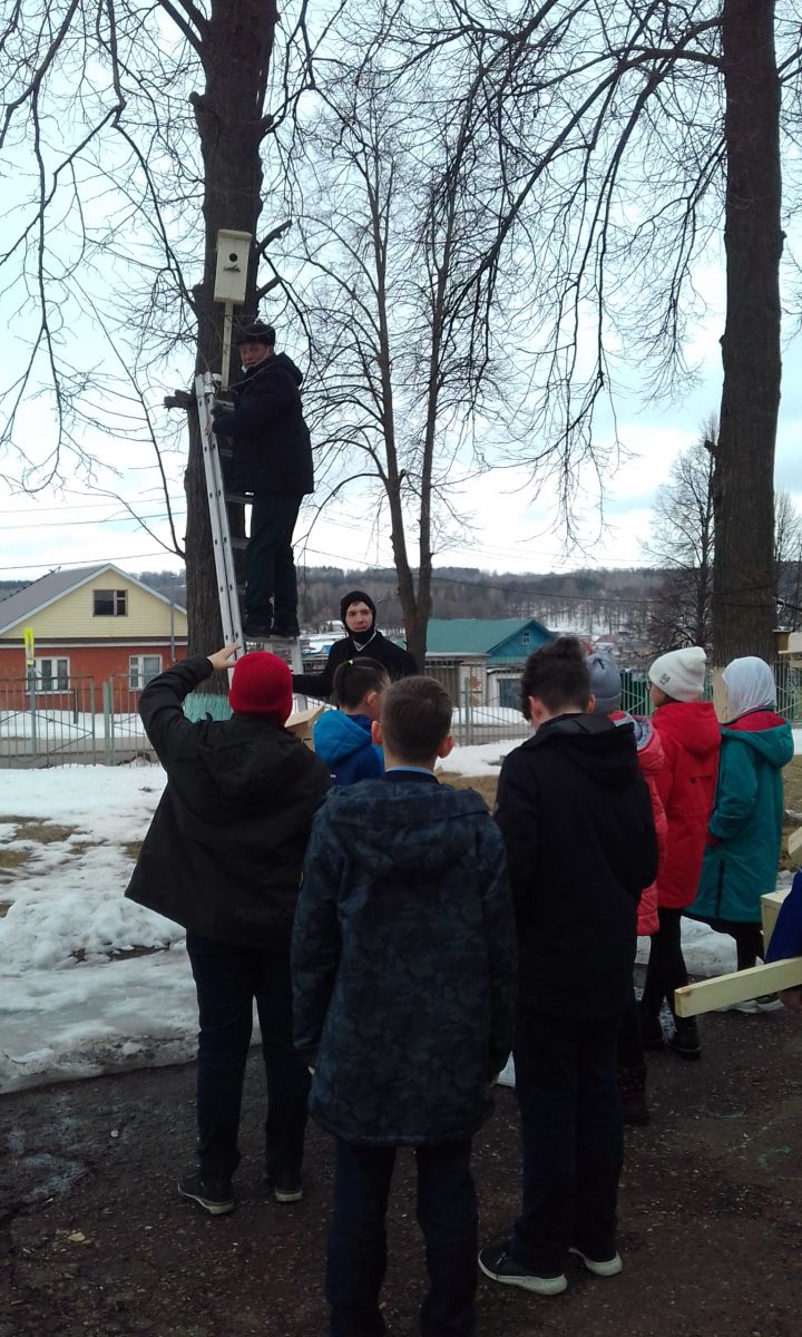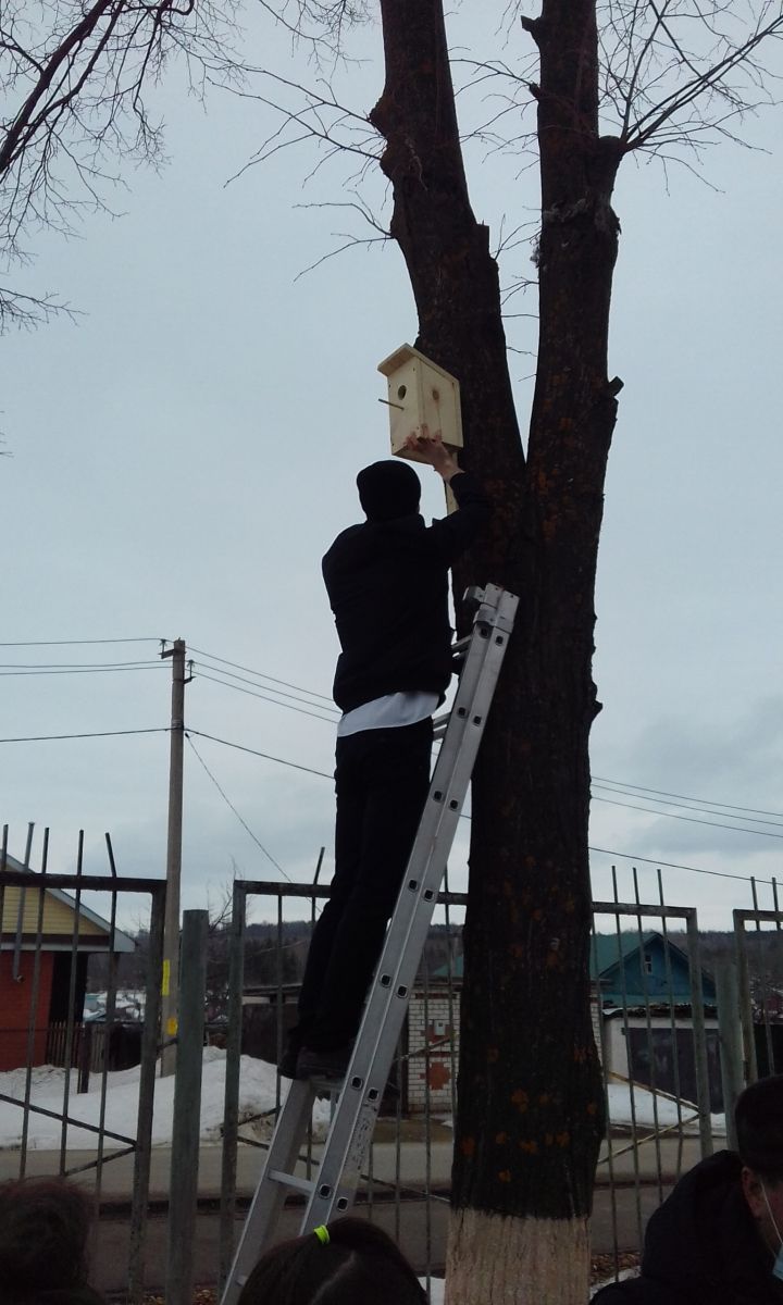 В школе прошёл конкурс по изготовлению скворечников для птиц “Птичий дом”, посвященный Международному дню птиц, организованный школьным лесничеством. В конкурсе принимали участие учащиеся 2-6 классов. Скворечники получились самых разных форм, размеров и видов. Вешать на деревья скворечники – является старой народной традицией. Птицы, живущие рядом, не только оказывают неоценимую помощь для окружающей природы, но и радуют нас, жителей нашего родного города своим видом и пением.7 апреля наше лесничество посетили инженер охраны и защиты леса Хайрутдинов Руслан Тависович, мастер леса Гайнутдинов Ильфак Мидхатович. Они рассказали детям о птицах весной, о перелётных птицах, о скворцах то, что не знали дети. Так же наградили грамотами участников конкурса “Птичий дом”.А потом все вместе развешивали скворечники на территории школы. -