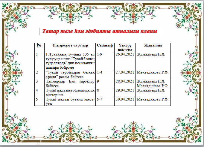Татар теле һәм әдәбияты атналыгы/Неделя татарского языка и литературы 26.04.2021