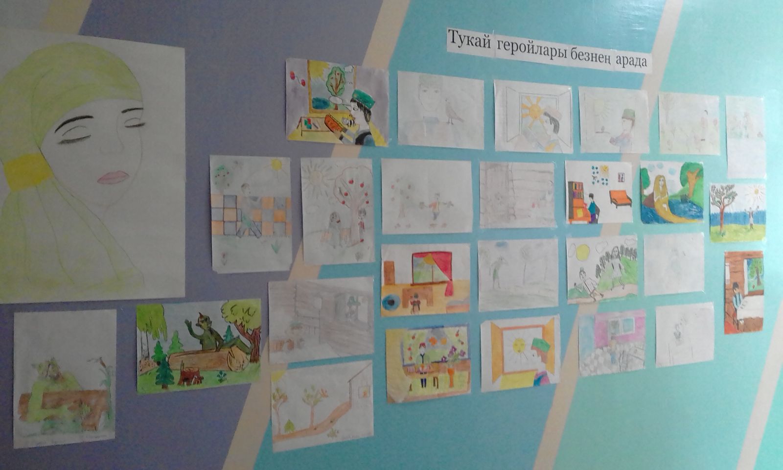 В нашей школе была организована выставка "Герои Тукая рядом с нами". В нем представлены рисунки учащихся по произведениям Габдуллы Тукая.