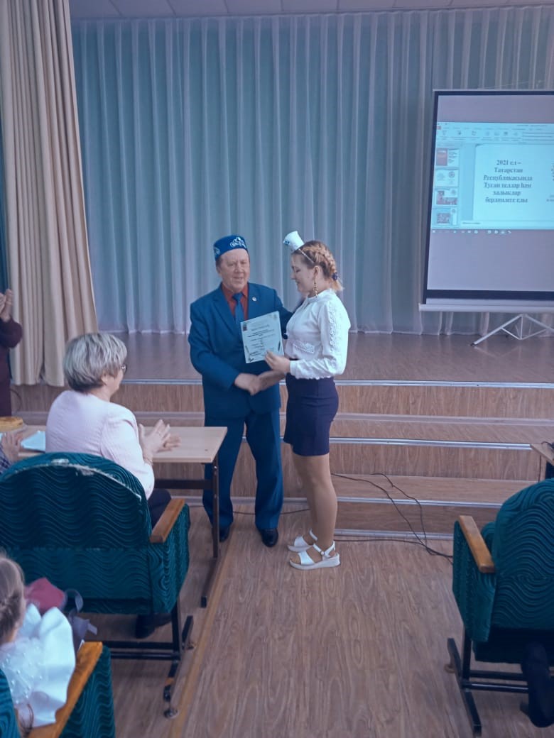 8 апрель көнне шәһәребезнең 4енче мәктәбе базасында Г.Тукайның 135 еллыгына багышланган регионара “Илһам канатында” яшь язучылар бәйгесе узды. Бәйгедә актив катнашып, 9ынчы сыйныф укучысы Шәйхетдинова А. лауреат исеменә лаек булды.8 апреля на базе 4-й школы города прошел межрегиональный конкурс молодых писателей “ Илһам канатында ”, посвященный 135-летию со дня рождения Г. Тукая. За активное участие в конкурсе ученица 9 класса Шайхутдинова А. удостоилась звания лауреата. -
