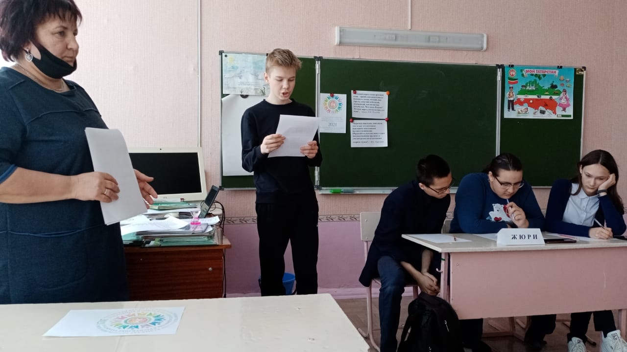 6 нчы март көнне туган телләр укытучысы Җамалиева и.Х. 7 һәм 8 нче сыйныф командалары арасында "Күңелле КВН" үткәрелде. Укучылар зирәклектә, тапкырлыкта, Туган тел буенча белемнәрдә көч сынаштылар.6 марта учителем родных языков Замалиевой И. Х. был проведен "Веселый КВН" между командами 7 и 8 классов. Учащиеся соревновались в смекалке, находчивости, в знаниях по родному русскому языку. -