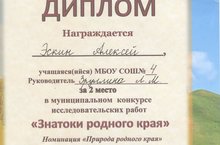 Поздравляем победителя муниципального конкурса исследовательских работ «Знатоки родного края», ученика 4А класса Эскина Алексея (учитель Зруллина Л.М.)
