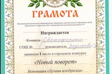 21.11.12 г. в ДДТ прошел муниципальный конкурс «Новый поворот». Ученики отряда ЮИД «Сфетофорики» заняли 1 место.