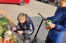 Советник директора по воспитанию и взаимодействию с детскими общественными объединениями Халимова А.М., волонтёры Пономарев Я и Афанасьева К. на этой неделе провели акцию для братьев наших меньших, кормили бездомных животных на улицах города. -