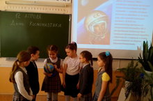В рамках проведения республиканской акции «108 минут вместе с Юрием Гагариным!», в целях патриотического воспитания детей и молодёжи на примере героических достижений отечественной космонавтики, первооткрывателей космоса, для привлечения внимания педагогов и учащихся к космической тематике и содействие её возвращению в содержание школьного образования 11 апреля среди учащихся 1-11 классов прошёл классный час, посвященный Дню космонавтики – Гагаринский урок «Космос – это мы». Учащиеся познакомились с информацией о первом полете человека в космос и о космосе. Посмотрели презентацию, участвовали в викторине. Полученные знания дети закрепили в своих творческих работах и рисунках. Были оформлены выставки детских работ, посвященные Дню космонавтики.