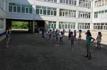 12 июля дети пришкольного лагеря ходили на экскурсию в спортивный клуб «Аркара». Под руководством тренера Сагдеевой Е.В. они занимались пилатесом. Так же в этом клубе ребята позанимались на спортивных тренажёрах. После обеда вожатые провели игру «Знатоки природы». На часе творчества рисовали на тему «Природа вокруг меня». На вечерней линейке дети получили призы. Трудовой отряд убирался во дворе школы. Они подметали, убирали мусор.