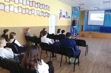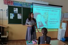 Учащиеся 5А класса в рамках Года родных языков и патриотического месячника на уроке родной литературы познакомились произведением Г. Кутуя “Приключения Рустама” . Рустам при помощи волшебства попадает на поле боя и участвует в Сталинградской битве. На примере мальчика у учащихся на уроке формировалось чувство патриотизма. Также учащиеся развивали способности осмысливать события и явления действительности во взаимосвязи прошлого, настоящего и будущего.
