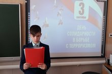 3 сентября в 4 Б классе прошёл классный час на тему "Скажем террору нет". Учащиеся вспомнили правила поведения при террор, при обнаружении неизвестных предметов. Почтили память погибших при терроре минутой молчания.