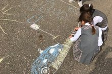 Класс нарисовал мелом на асфальте рисунки, а лучшие из них получили грамоты.