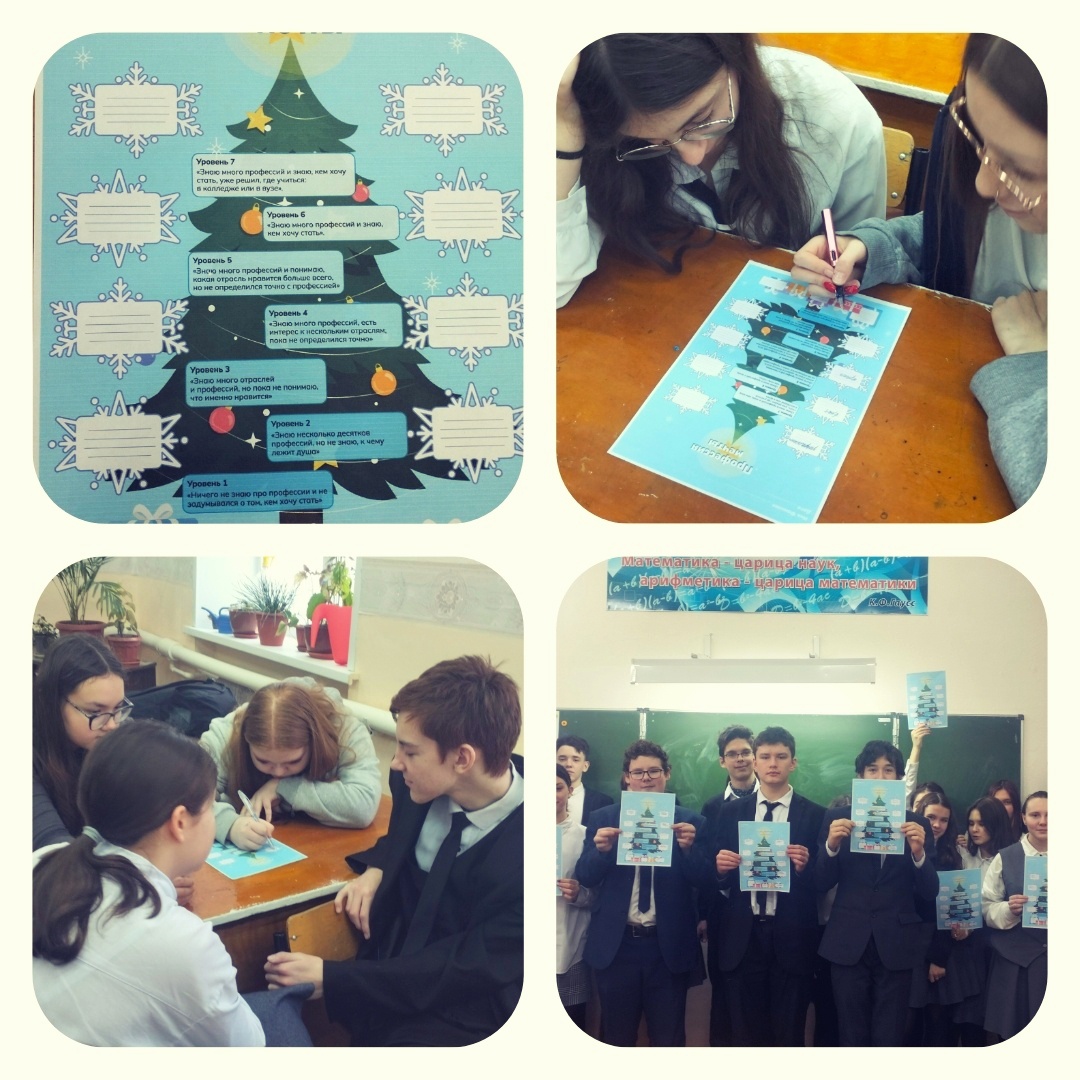 В рамках внеурочной деятельности в 9Б прошло занятие "Россия- мои горизонты". Ребята создавали и украшали «Ёлку профессий» своими яркими достижениями и подводили таким образом итоги уходящего года!