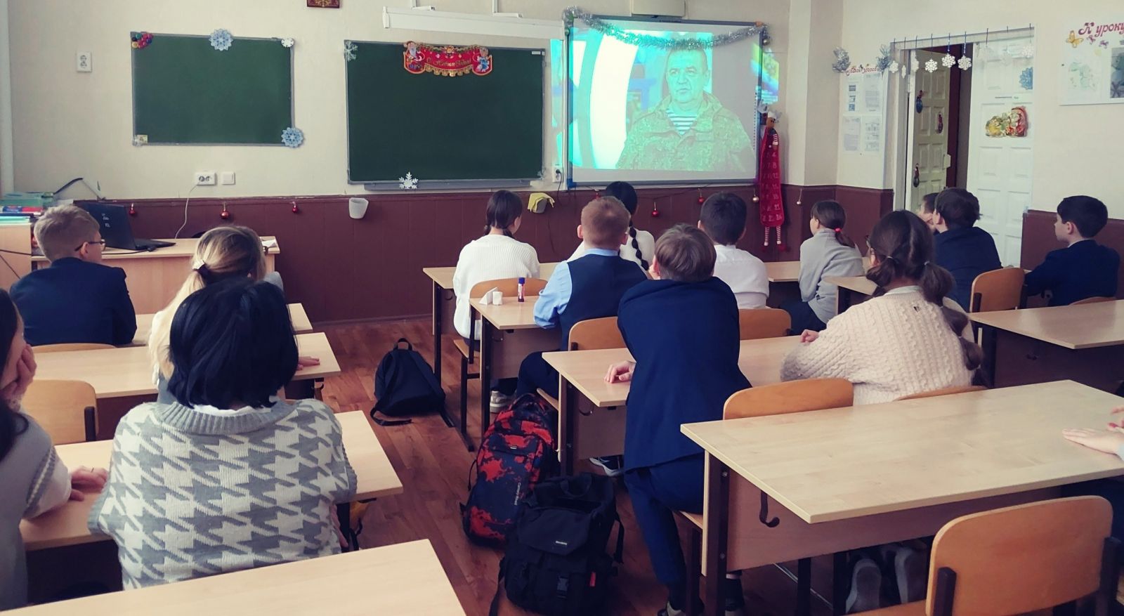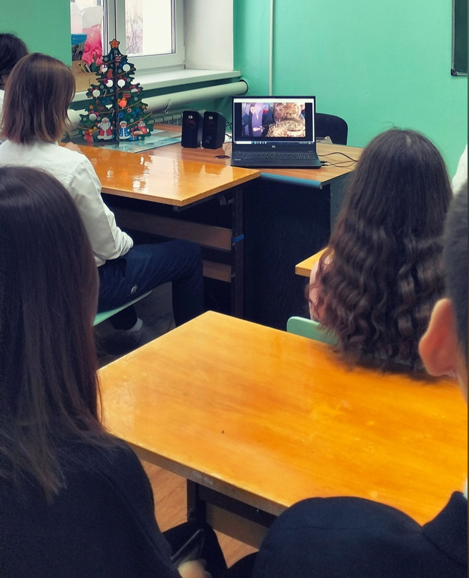 18 декабря в рамках курса внеурочной деятельности «Разговоры о важном» в 11У классе прошло занятие по теме «Герои нашего времени». В ходе урока учащиеся знакомились с историей России, её выдающимися людьми, героями Отечества. Анализируя героические поступки, совершённые нашими соотечественниками, обучающиеся на конкретных примерах увидели, что такое отвага, взаимопомощь, решительность и находчивость в сложных ситуациях и пришли к выводу о мотивах проявления героизма и ценности служения Отечеству.