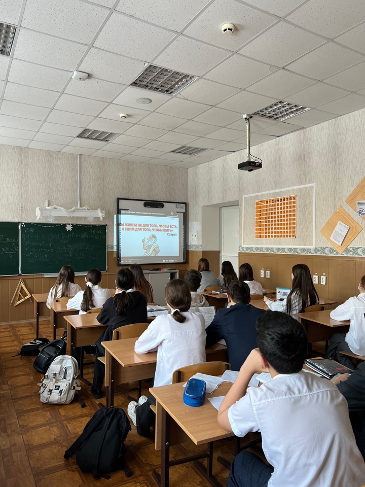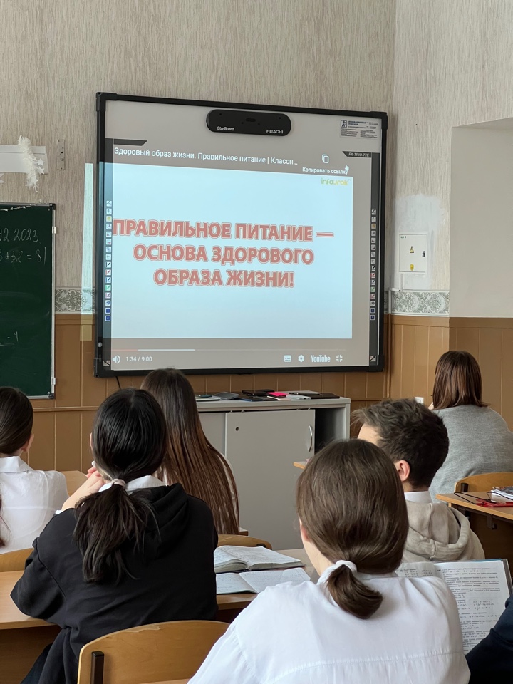 В рамках «недели школьного питания» в 8А классе прошел классный час на тему «Правильное питание-основа здорового образа жизни». Урок был посвящен ознакомлению учащихся с правилами рационального питания, что сегодня касается современной проблемой человека 21 века.