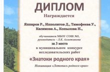 Поздравляем команду учащихся 4 А класса (классный руководительЛ.К.Ахметзянова), призёров муниципального конкурса "Знатоки родного края".