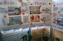 Накануне Дня защитника Отечества в школе открыта тематическая выставка рисунков «Будем Родине служить!». В школьной библиотеке организована выставка литературы «Святое дело Родине служить».