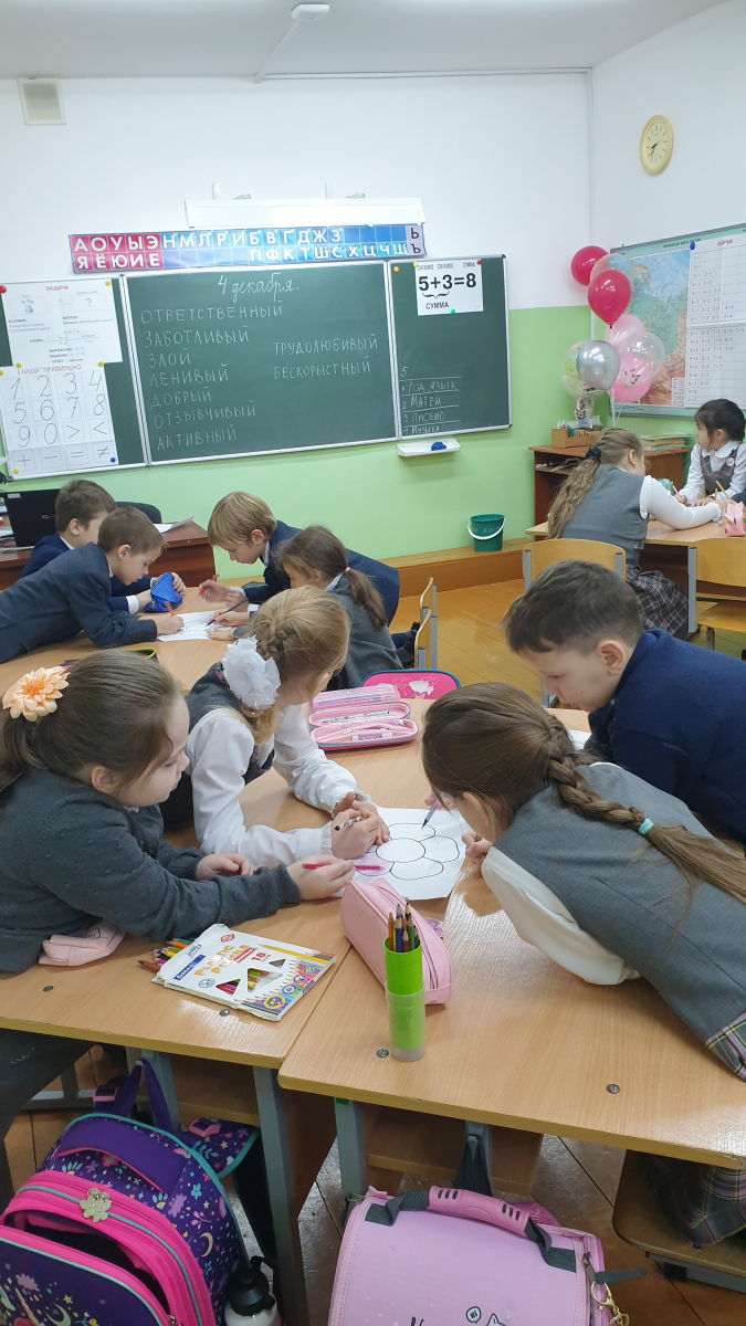 В 1А классе прошел разговор о важном, в ходе которого учащиеся познакомились с понятием "волонтер", узнали, чем занимаются волонтеры, кто может стать волонтером. После просмотра видеоролика "Первые. День волонтера", ребята, работая в группах, выполняли задание " Цветок доброты".