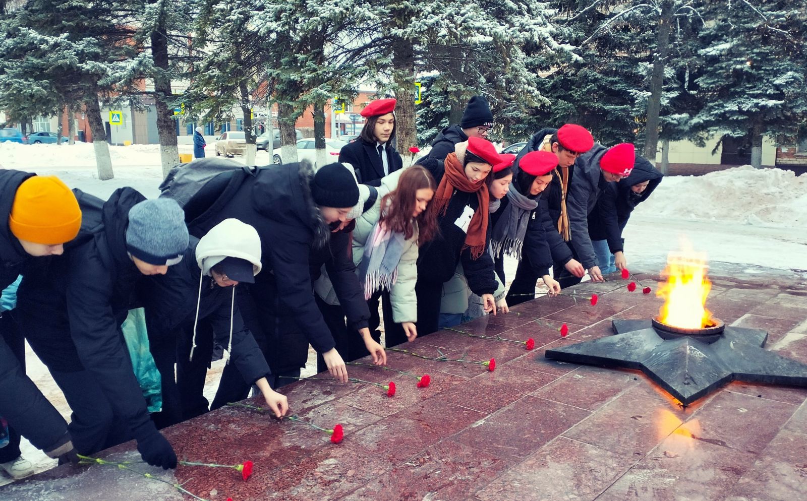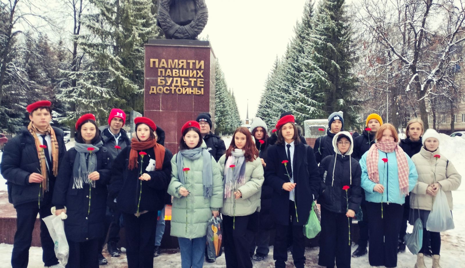 на территории страны или за её пределами. В преддверии этой даты отряд ЮнАрмии, учащиеся 9Б и 5А класса, возложили живые цветы к Вечному огню и поклонились солдатам, погибшим в Великой Отечественной войне. отдав дань уважения всем солдатам, не вернувшимся с войны.