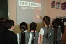 4.05.2016г в 6Б классе (учитель Е.Г.Ильмукова) прошла беседа на тему "Никто не забыт, ничто не забыто". Ребята познакомились с биографией знаменитого летчика-испытателя А.П.Маресьева, которому в этом году исполняется 100 лет со дня рождения. Учащимся была представлена презентация с яркими фактами из жизни летчика, затем в преддверии празднования Дня Победы ребятам было предложено принять участие в разработке проекта "И помнит мир спасенный...".