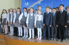 Учителя и ученики с радостью выходили на переменах в актовый зал, где и проходил праздничный концерт.