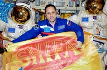 С самого утра в коридорах школы то и дело слышались разговоры о предстоящем визите настоящих космонавтов. Все томились в ожидании. Еще бы! У нас в школе космонавты, среди которых тот, который совем недавно бороздил просторы Вселенной. Наконец настал час встречи. Собрался полный зал учащихся, родителей, которые стоя и аплодисментами встречали А.Н.Шкаплерова, российского космонавта-испытателя, полковника ВВС, героя РФ , С.Ш.Шарипова, российского и киргизского космонавта, героя РФ, героя Республики Кыргызстан. Встреча прошла в форме круглого стола, учащиеся получили ответы на вопросы, интересовавшие их, узнали много нового о жизни в условиях невесомости. Кульминацией встречи стала торжественная передача флага торговой сети «Шифа», который побывал в космосе. Флаг с автографом А.Шкаплерова будет храниться в музее «Шифа» и насыщать всех космической силой и энергией. Благодарим учредителя торговой сети «Шифа» С.Р. Бадрутдинова за организацию встречи, подарившей столько радости и детям, и взрослым. Это событие надолго останется в памяти всех присутствующих. А нашим гостям – гер6оям-космонавтам мы желаем здоровья, новых успешных полетов и открытий!