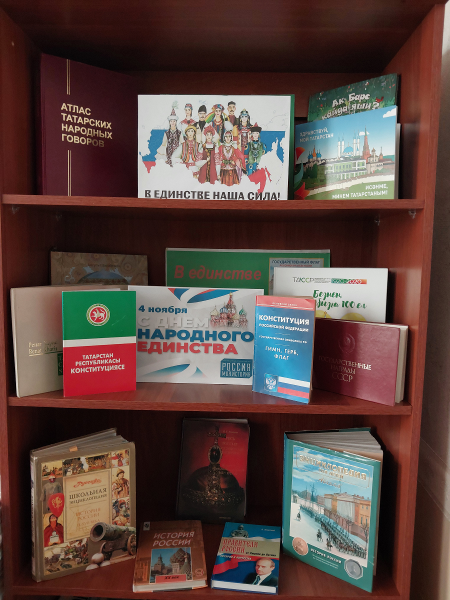 Ежегодно в России отмечается День народного единства — 4 ноября. Этот праздник – дань глубокого уважения к тем знаменательным страницам отечественной истории, когда патриотизм и гражданственность помогли нашему народу объединиться и защитить страну от захватчиков. В школьной библиотеке оформлена тематическа выставка, на которой представлены книги об истории России и русского народа, о героях и событиях смутного времени, прославленных русских полководцах и многом другом. Книги позволят читателям более подробно узнать об этом тяжелом для России времени.
