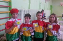 28 апреля учащиеся 1В класса стали участниками спортивно-патриотической игры "Зарница". Они соревновлись с подготовительной группой подшефного детского сада №7.Зарница была посвящена празднованию 70-летия Дня Победы. В упорной борьбе команда "Дружный" заняла 2 место, уступив команде "Батыр" 2 очка.
