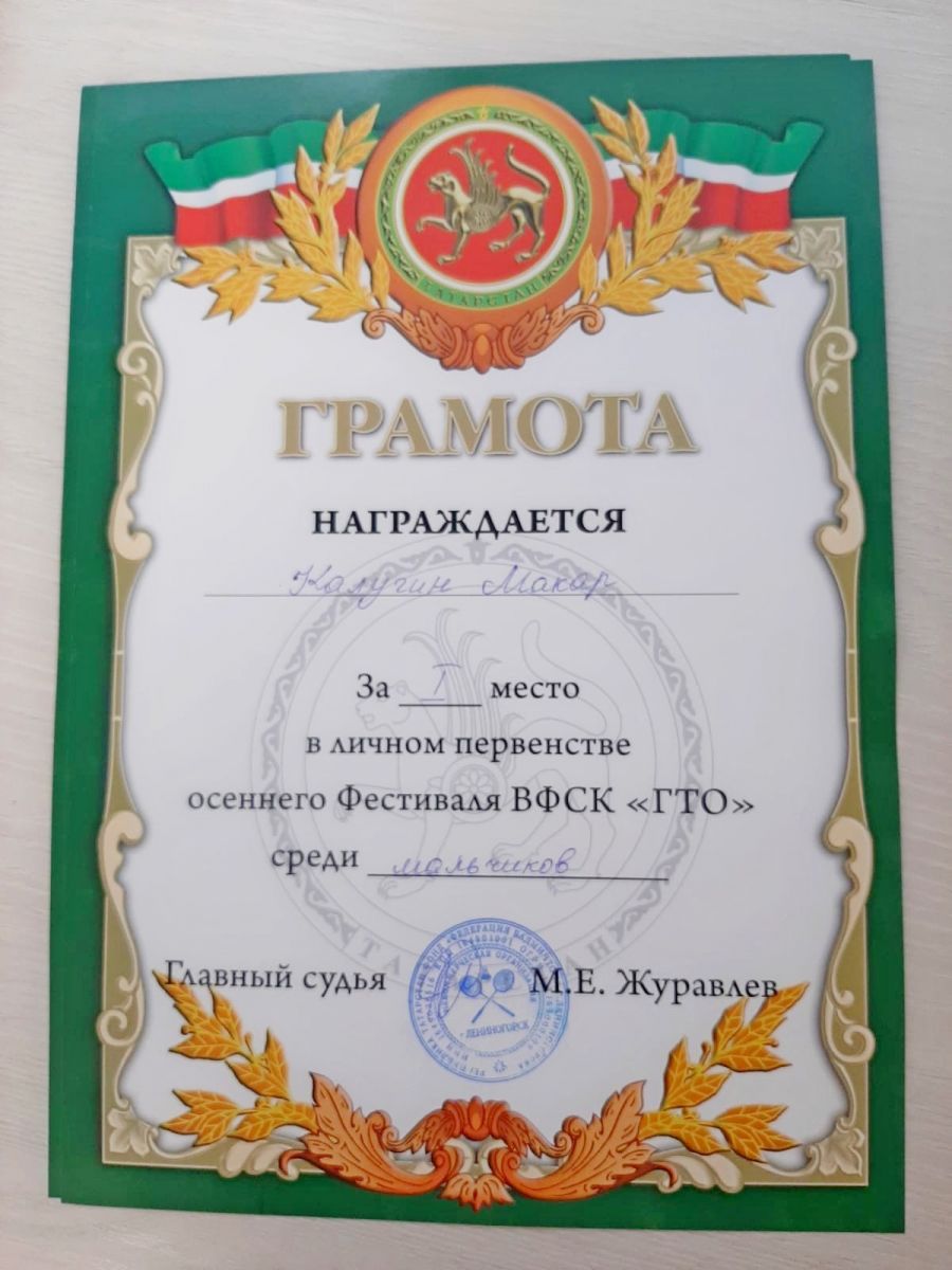 Поздравляем Калугина Макара, ученика 2 Б класса с первыми спортивными достижениями.Вместе с папой Макар сдал нормативы ГТО и занял 1 место.Так держать! #МБОУСОШ5МОЛМРРТ