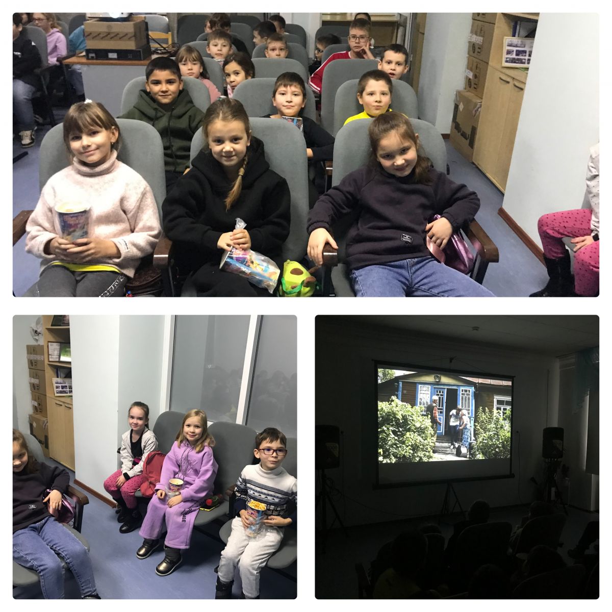 3б класс в кинотеатре на просмотре фильма "По щучьему велению"