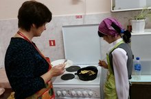 В целях реализации плана мероприятий ко Дню пожилых людей 1 октября в школе прошла акция "Угощение к чаю любимым бабушке и дедушке". В рамках акции девочки 7-х классов прошли специальное занятие по обучению выпечки хвороста.