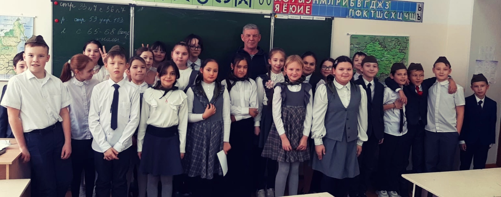 В рамках месячника гражданско – патриотического воспитания, в 4 А прошло мероприятие, посвященное Дню защитника Отечества. Ребята приветствовали участника СВО Тютнева А.В., который своим выступлением сумел расширить представления учащихся о Вооружённых силах России. Мероприятие способствовало воспитанию чувства патриотизма и гордости за свою Родину. Ребята также исполнили песни о Родине и читали стихотворения.